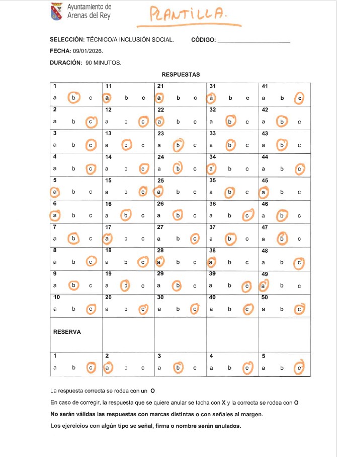 PLANTILLA CON LAS RESPUESTAS DE LA PRUEBA AL PUESTO DE TECNICO DE INCLUSION SOCIAL